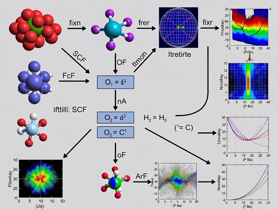 aug-cc-pVTZ, ma-def2-SVP) can introduce linear dependence and SCF convergence problems, especially for radical anions [3].The Self-Consistent Field (SCF) procedure is an iterative method used in quantum chemistry to solve for the molecular orbitals that minimize the total electronic energy. The process starts with an initial guess for the density matrix or molecular orbitals, which is used to construct the Fock operator. This operator is then diagonalized to produce a new set of orbitals, and the cycle repeats until the change in energy or density between iterations falls below a specified threshold [8] [9] [10].