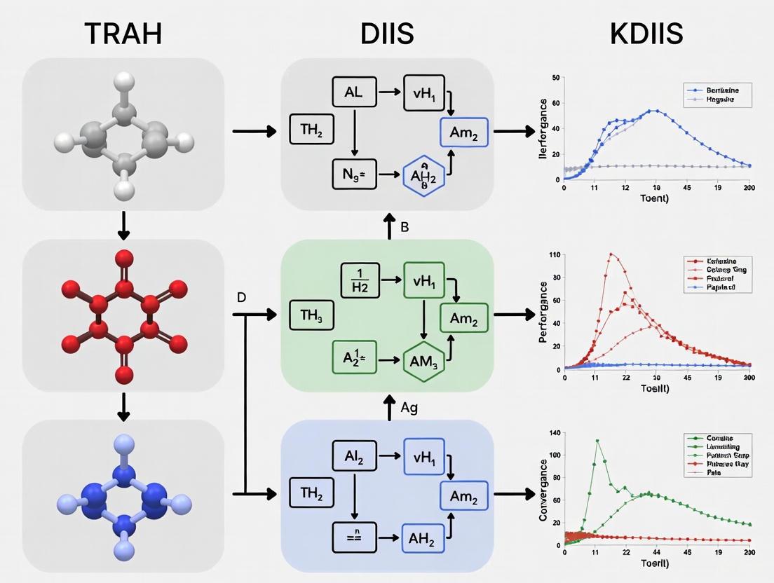 This guide provides a comprehensive comparison of the DIIS, KDIIS, and TRAH algorithms, examining their underlying philosophies, implementation details, and relative performance across different chemical systems, to assist researchers in selecting the optimal strategy for their specific computational challenges.